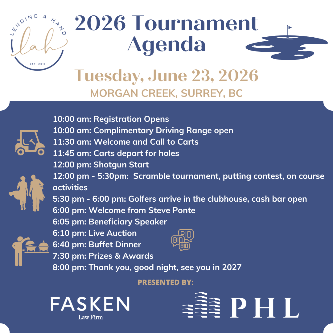 "We are overjoyed to announce that the Lending A Hand Society’s 4th annual golf tournament raised an incredible $108,840.52 for Covenant House Vancouver! As an organization, our goal is to support meaningful causes, and we are so proud to contribute these funds to Covenant House’s vital mission. They work tirelessly to help youth who have fled abuse or are experiencing homelessness by providing them with tailored, wrap-around support services, unconditional love, and a path toward a brighter future.” – Lending a Hand Society We would like to also thank all the sponsors and golfers who made this possible. Your generosity is a powerful message of hope and directly impacts the lives of resilient young people in our community. |
